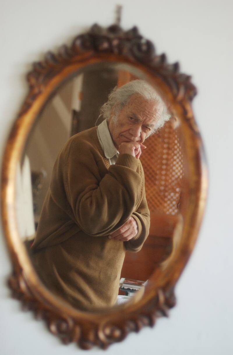 "Duerme poco y, como él mismo cuenta, disfruta mirando los pájaros que sobrevuelan su terreno", se lee en la revista Mármol, donde ambos conversan en una casa con más habitaciones que habitantes.