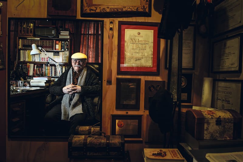 Cuesta seguir un diálogo más lineal con El Temucano. Como casi ningún otro músico chileno, su centro de operaciones es una oficina tapizada con sus reconocimientos y galardones, mezclados entre una biblioteca con libros de J. J. Benítez y un diario de vida que empezó a escribir en 1964, distribuido en 83 tomos y 51.189 páginas. El mismo que hoy está resumiendo por encargo de un editorial. Entonces, ¿por qué a un hombre tan preocupado por su pasado no le importa su legado? “Eso es lo que el sistema te exige. Yo sólo quiero dejar esto a mis hijos para que lo muestren. Y el libro lo estoy haciendo porque me lo pidió un editorial, o sino no lo hago”.