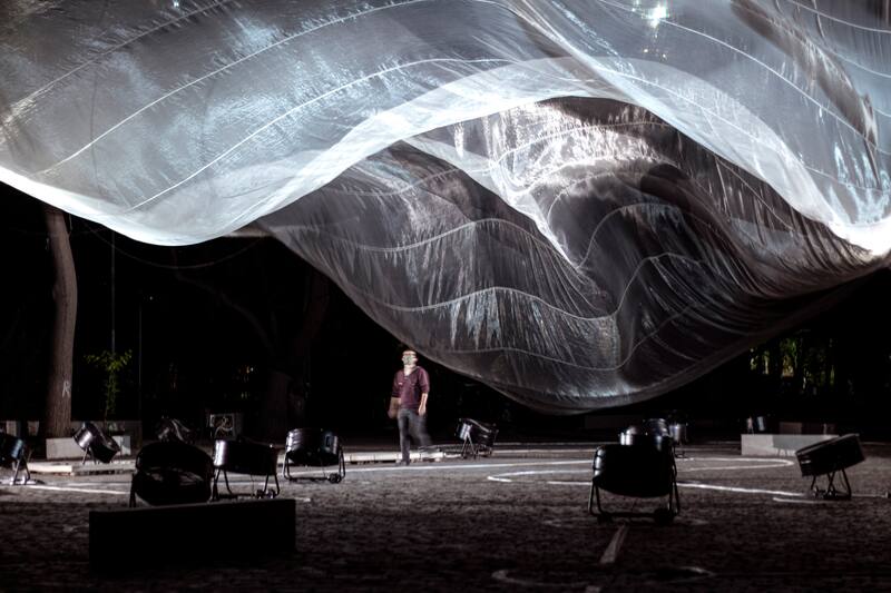 “Es un honor que me hayan pedido hacer el pabellón para conmemorar estos 170 años. Surgió desde la dificultad de cómo hacer con arquitectura algo que representara todos los años que han pasado y ahí salió esta idea de que fuese este volumen que está en constante cambio. Es liviano y creo que tiene mucho que ver con este nuevo Chile y los cambios que se avecinan”, comenta Domingo Arancibia, sobre la instalación que esperan abrir gradualmente a público en noviembre.
