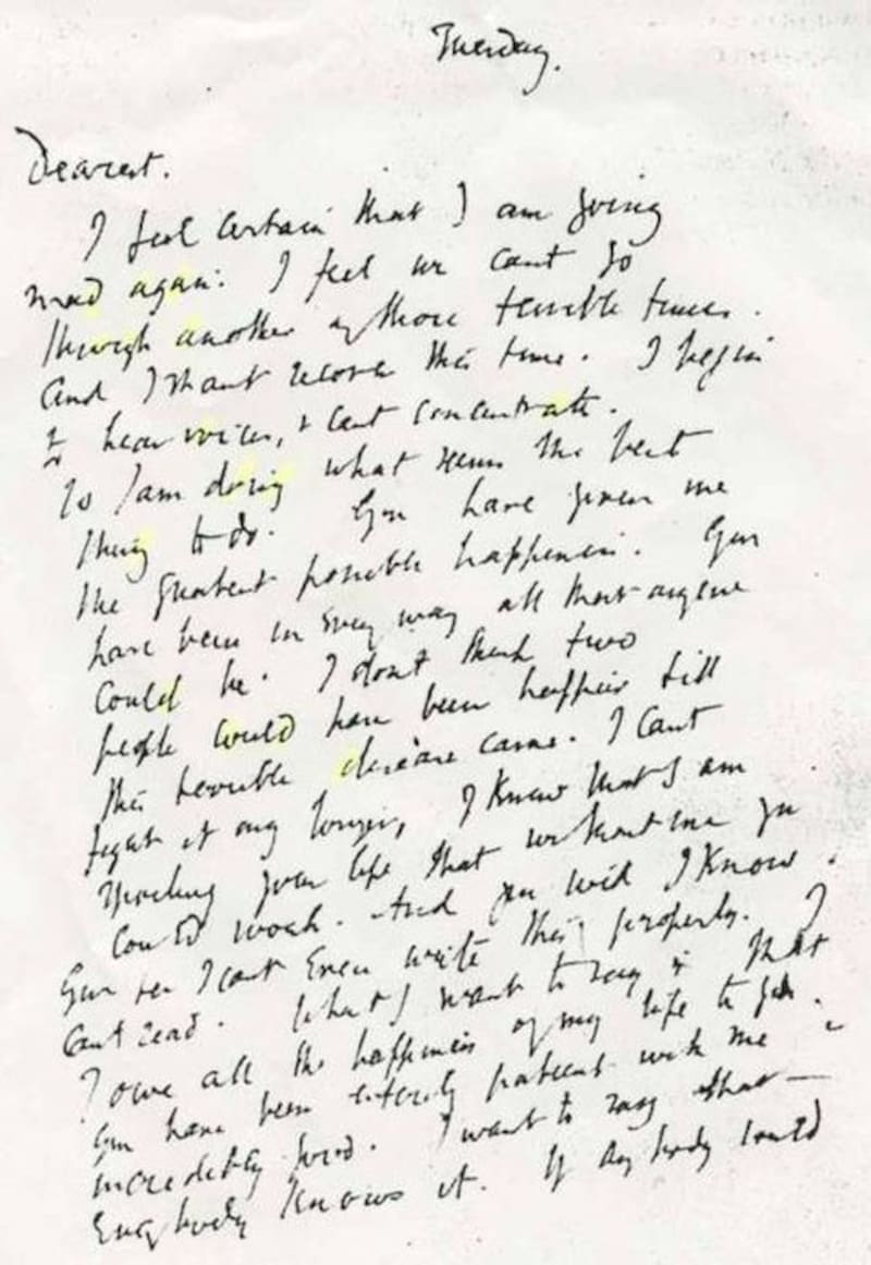 Todo el contexto del peligro desatado por la guerra, la fría recepción de su libro biográfico sobre Roger Fry y la incomprensión de la época respecto al trastorno bipolar –que era catalogado como una “enfermedad de artistas”- terminaron por detonar la decisión de la escritora, que antes ya había tenido un par de intentos por quitarse la vida.