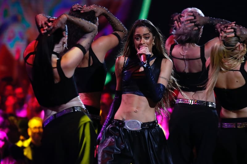 En escena, Tini Stoessel hace gala de su bagaje en la industria del entretenimiento. Sus años en la factoría Disney le imprimieron un toque de actuación a sus interpretaciones. Sin tener una voz destacada (palidece en eso al lado de Karol G), la trasandina sabe darle lo que quiere a su público. Se acerca a los palcos para que sus fans le tomen fotografías, baja por el pasillo que separa loa palcos para darse un baño de masas saludando a sus fans, abraza a una niña que llora, desbordaba por la emoción. Otra le regala su chaqueta, que ella recoge y la viste en el escenario. Espectáculo puro.