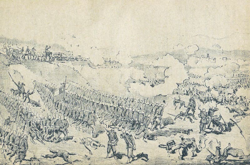 El resto es conocido. La columna chilena fue atacada por un contingente peruano de 300 soldados, al mando del coronel Juan Gastó, además de un millar de guerrilleros indígenas, capitaneados por Ambrosio Salazar, el administrador de una hacienda local que había logrado con éxito organizar montoneras contra el ejército chileno desplegado en la Sierra. Tras combatir desde la tarde del día 9 hasta el amanecer del 10, las tropas chilenas fueron masacradas.