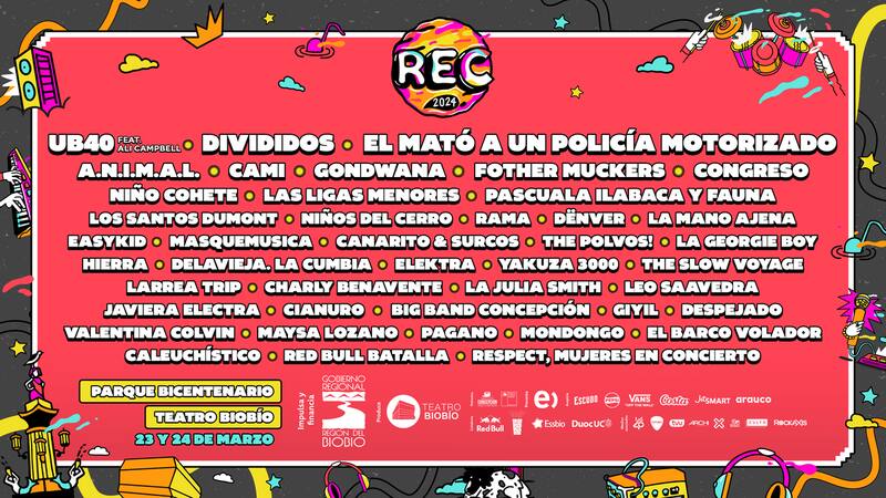 La organización del Festival REC anunció durante la jornada de este martes 13 de febrero, los artistas que estarán presentes en la edición 2024, uno de los festivales gratuitos más grande del país. Esta novena versión se realizará el 23 y 24 de marzo en el Parque Bicentenario de Concepción y en el Teatro Biobío.