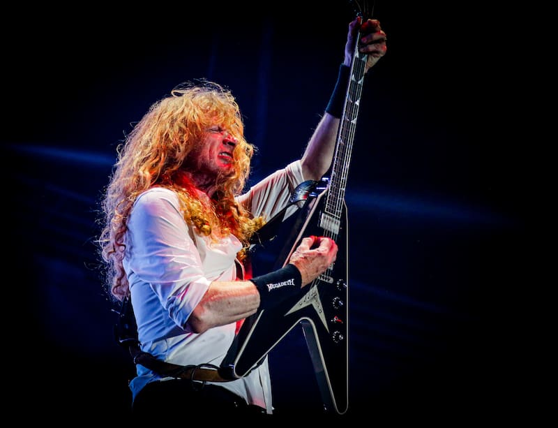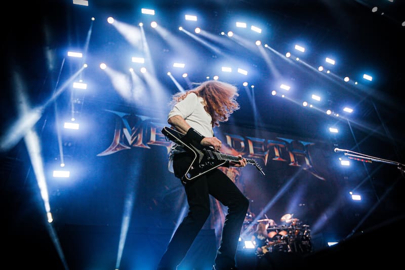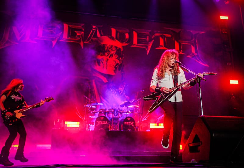 Dave Mustaine fue de menos a más. Los primeros solos a su cargo evidenciaron algún yerro menor, mientras la voz parecía sepultada por la masa sónica. Después de más de 40 años de uso y abuso de las cuerdas vocales, más la arremetida de un cáncer a la garganta la década pasada, junto a un pasado alcohólico y drogadicto, la estrella del metal es un sobreviviente genuino. Que siga al mando de Megadeth brindando espectáculos contundentes es prácticamente un milagro. El músico que fue expulsado de Metallica por destacar como borracho en una banda aproblemada por la bebida -el ángel caído del thrash-, sigue demostrando al mundo que la esencia del género se mantendrá intacta, mientras pueda seguir empuñando una guitarra frente al micrófono.