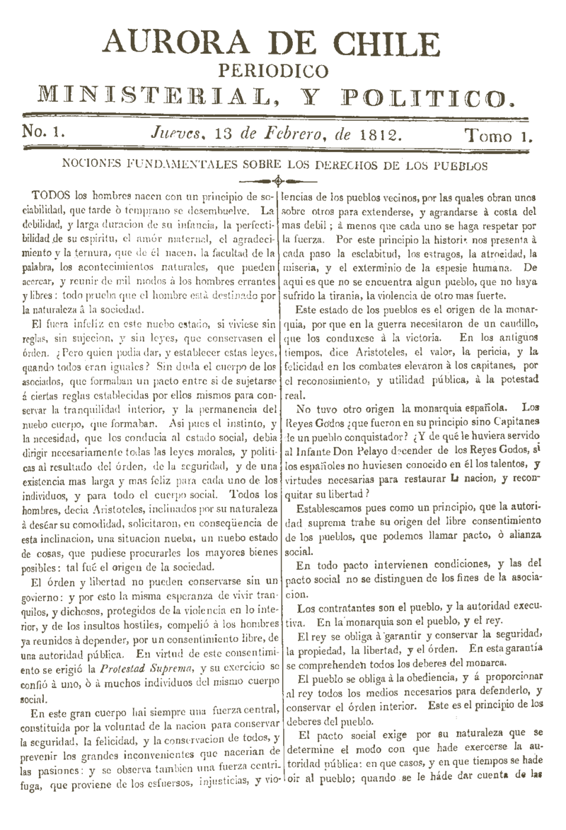 “El 4 de julio se vio en medio de este pueblo la respetable imagen de los pueblos libres, y del entusiasmo de la libertad “, apuntó la breve nota de La Aurora de Chile, publicada en su número 22, del 9 de julio de 1812. Ahí daba cuenta, aunque sin entrar en mayores detalles, sobre la primera celebración de la independencia de los EE.UU. en el país. Un evento social en toda regla, cargado de simbolismos para la patria que nacía bajo el liderazgo de su hombre fuerte, el general José Miguel Carrera, la cabeza de la Junta de Gobierno.