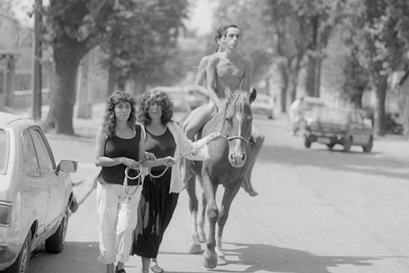 Trayendo el concepto a tierras nacionales, Pedro Lemebel y Francisco Casas, de las Yeguas del Apocalipsis, recurrieron al desnudo de forma constante en sus presentaciones. En 1988, en medio de la toma de los estudiantes de la Facultad de Artes de la Universidad de Chile, ambos aparecieron desnudos sobre una yegua, guiados por las poetas Carmen Berenguer, Carolina Jerez y Nadia Prado. “Lemebel y Casas parodian y erotizan la iconografía viril del militar/conquistador y hacen referencia a la homosexualidad masculina”, señala el archivo del dúo.