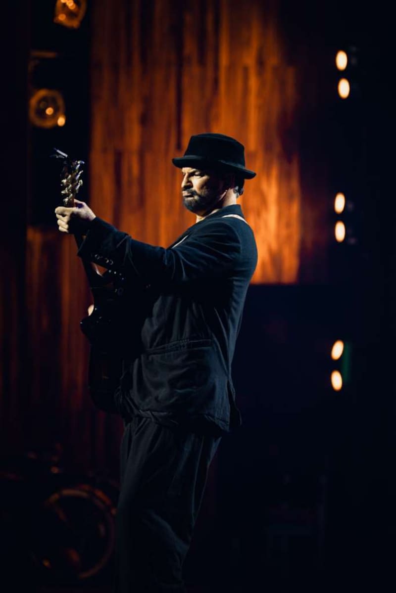 Pero hoy Arjona es otro. No más chalas ni trajes floridos. Pasada las 20.30 horas, el intérprete aparece sobre el Teatro Nacional con traje negro abierto en la parte de arriba, sombrero de igual color y zapatillas blancas. Es la estampa que identifica a Seco, su último álbum de 2025, bautizado con el apodo que se le conocía desde niño debido a su altura y delgadez.