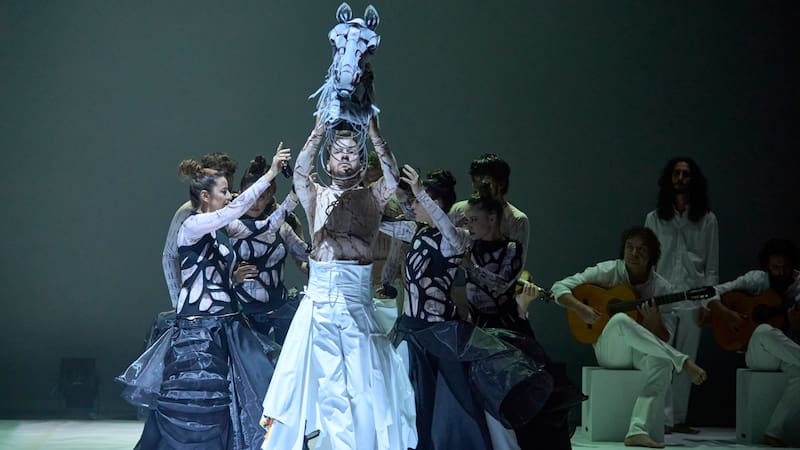 El espectáculo se estructura en dos actos complementarios que dialogan entre tradición y vanguardia. El primero, “Suite Picasso”, recorre distintos palos del flamenco con una propuesta llena de fuerza y vitalidad, interpretada por 12 bailarines y siete músicos en vivo, evocando la etapa juvenil del artista en el París de comienzos del siglo XX. El segundo acto, “ETERNO”, propone una mirada más contemporánea e introspectiva, situando al espectador dentro de la mente del pintor mediante una innovadora investigación coreográfica y una composición sinfónica original de Lucas Vidal.