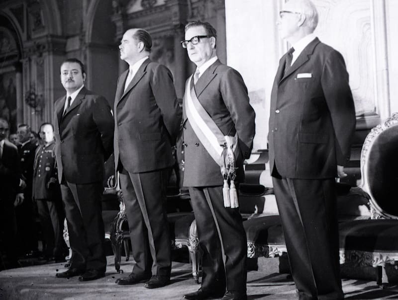Alfredo Sepúlveda: Coincido, y añadiría un poquito de nuestros vecinos. Argentina está en un proceso de dictadura militar encabezada por el General Lanusse, que intenta ablandarse para llegar a un peronismo sin Perón. En Perú hay un régimen teóricamente a favor de la UP, el de [Juan] Velasco Alvarado, un militar que derrocó a un Presidente electo democráticamente y que ha lanzado una revolución de corte nacionalista, haciendo cosas bastante similares a las que va a hacer después Allende: reforma agraria, estatización del petróleo de empresas de EEUU, en una especie de sinopsis de lo que va a venir con la nacionalización del cobre en Chile. En Bolivia también tenemos un régimen de izquierda militar, derrocado durante el período de Allende. Y está Cuba, un país aislado diplomáticamente y al que le aparece un aliado ideológico en Occidente.