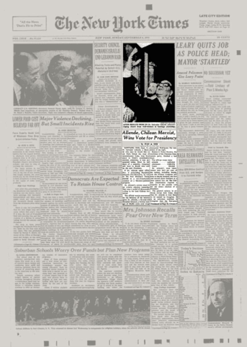 El 4 de septiembre de 1970, tras obtener la primera mayoría en las elecciones presidenciales, Salvador Allende se encamina a ser el primer militante marxista en llegar a una jefatura de Estado por cauces democráticos. Este solo hecho despertó en la prensa mundial y en las opiniones públicas un inusitado interés en Chile.