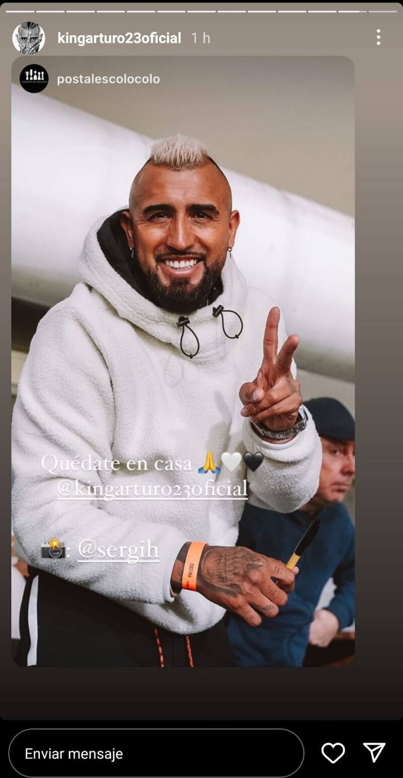 Arturo Vidal lo reveló en sus redes sociales, específicamente en Instagram, en donde subió varias historias alentando al Cacique. A sólo unos metros, Esteban Paredes también vio el encuentro de los albos. Ambos fueron muy requeridos por los fanáticos, quienes les pidieron fotos en el entretiempo del encuentro.
