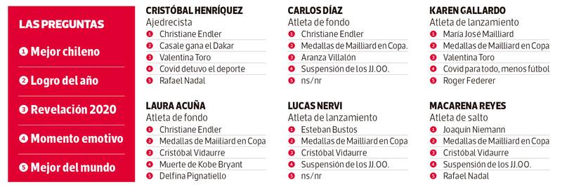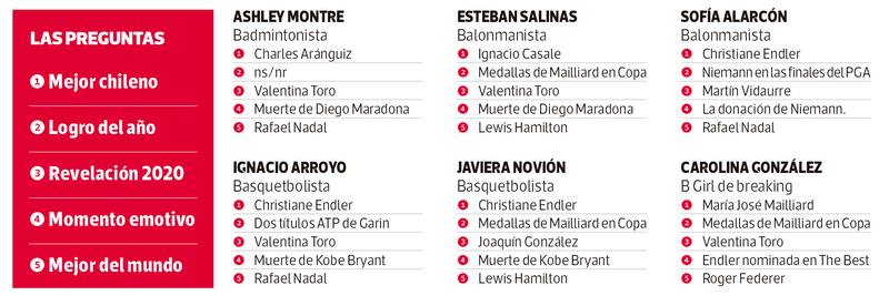 1OO deportistas eligen a los mejores y los momentos más significativos del año en la tradicional encuesta de La Tercera. Christiane Endler se lleva los aplausos.