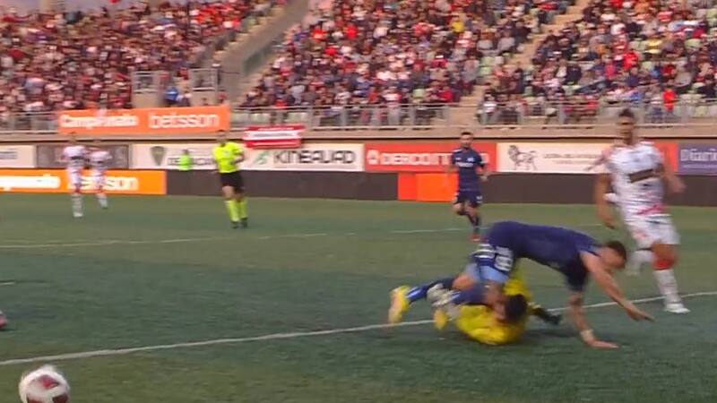 La escena fue dramática. En el rostro del golero había sangre, un indicio de que el choque le había generado un daño considerable. Fue retirado de la cancha en la ambulancia que los clubes locales deben disponer por obligación reglamentaria.