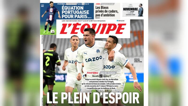 Sin ir más lejos, la foto principal de la portada de L’Equipe, el diario deportivo más importante del país galo, es una gráfica del chileno junto al marroquí Amine Harit y el turco Cengiz Ünder, donde destaca la frase: “Lleno de Esperanza”.