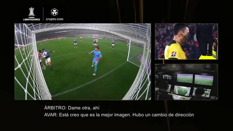El VAR le indica que observe un cambio de dirección. “Dame otra”, vuelve a pedir Tobar. “Esa es la mejor imagen, hubo un cambio de dirección”, le vuelven a indicar desde la cabina. “No me parece, a verla de nuevo”, dice Tobar.