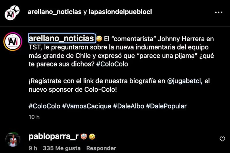 Pablo Parra trata de ‘payaso’ a Johnny Herrera por criticar la nueva camiseta de Colo Colo