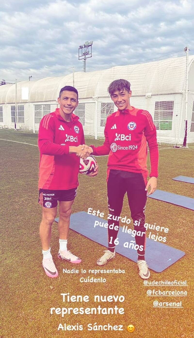 También entregó detalles del vínculo que generó con él, a quién apadrinó. Así, aseguró convertirse en su nuevo agente. “16 años. Nadie lo representaba, cuídenlo. Tiene nuevo representante: Alexis Sánchez”, señaló.