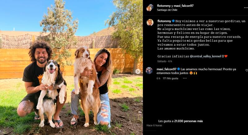 ¿Por qué el charrúa volvió al país? La respuesta la dio su pareja, Florencia Pouso, quien posteó en sus redes sociales que viajaron a ver a sus mascotas. “Hoy vinimos a ver a nuestras gorditas, un pre encuentro antes de viajar. Me alegra muchísimo verlas como las vimos, hermosas y felices en su hogar de origen”, escribió la mujer, junto a una fotografía del zaguero con sus perros.
