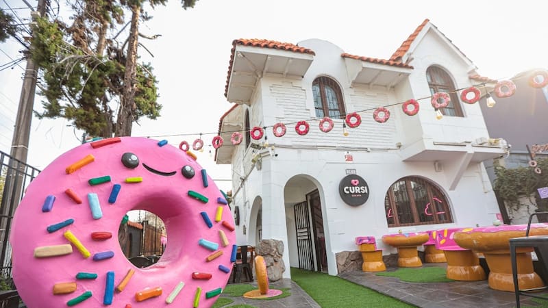 En Av. Manuel Montt antes de llegar a Valenzuela Castillo, en Providencia, hay una casona que luce una enorme dona en la terraza y que da la bienvenida a Cursi Donuts.