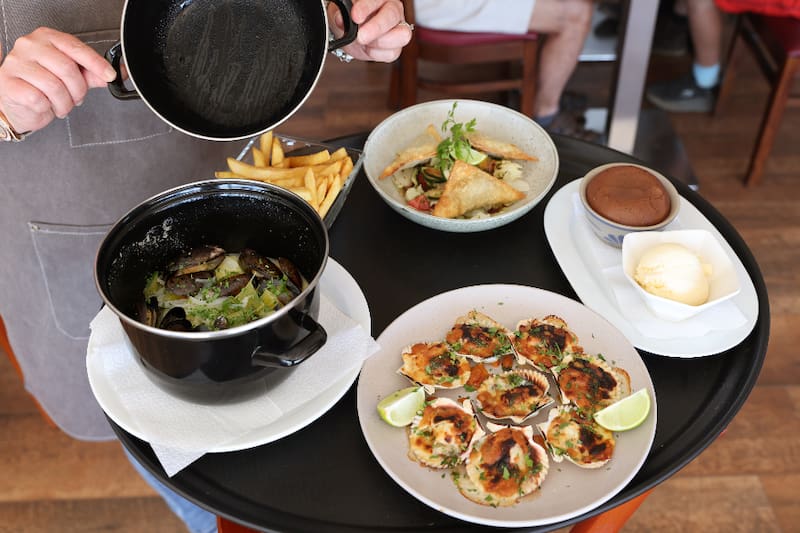 Y, en los que se destacan platos como los Choritos a lo Belga ($ 17.500), hechos al vapor, que llegan humeantes en un caldo en base a vino blanco, apio, cebolla y un toque de crema, más papas fritas caseras; o la ReinetaMeunière ($ 15.500), a la mantequilla, con jugo de limón y perejil.