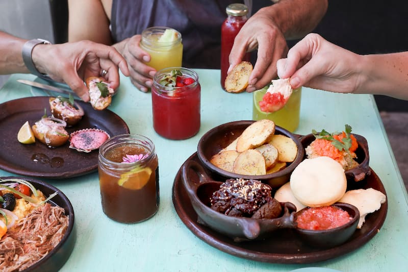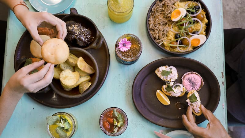 Opciones que incluyen ceviches, picoteos e incluso platos veganos hasta tablas, como el Picoteo mapuche ($ 12.900), con katutos -el pan de trigo machacado y cocido- atomatodos, con muñoquin, pan de legumbres, arvejas o porotos por ejemplo, chutney y papas fritas.