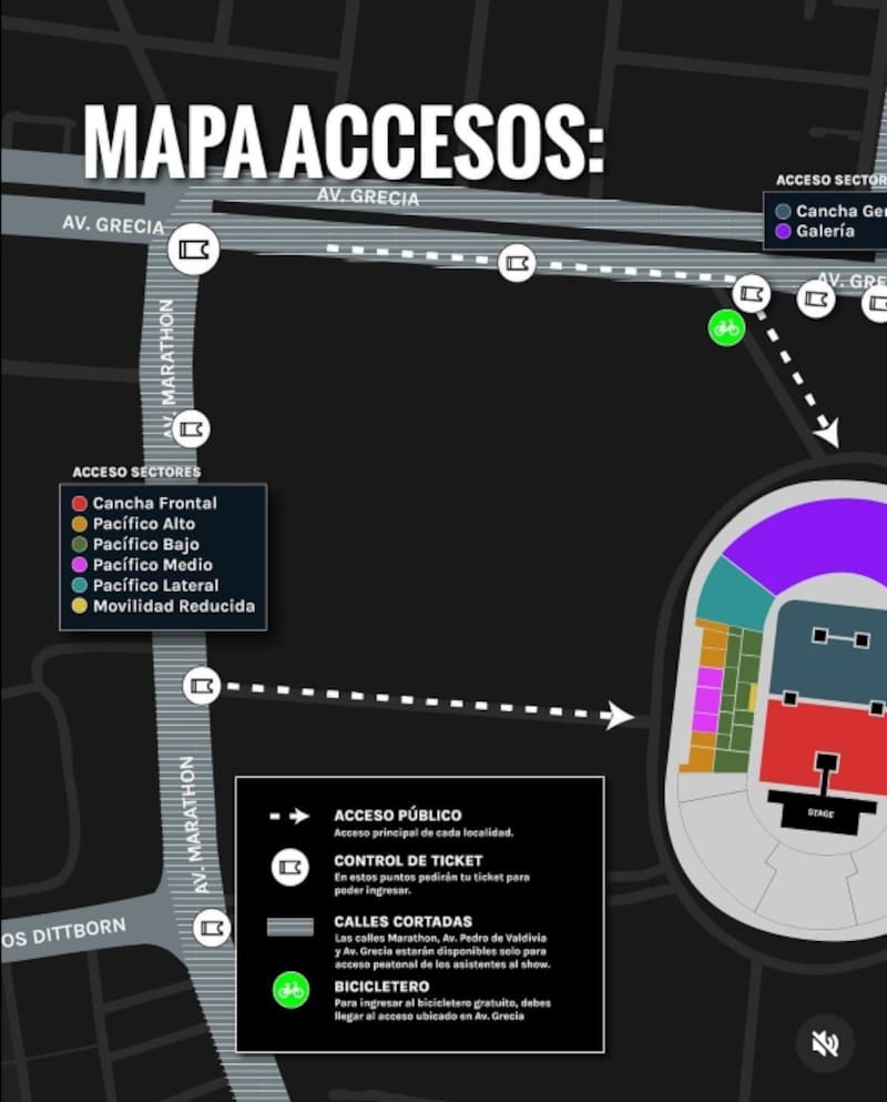 En tanto, las puertas del Estadio Nacional se abrirán a las 4 PM, con tres accesos dependiendo de tu entrada: