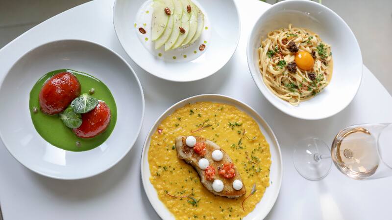 Además de fondos como una Lisa a la parrilla, con salsa dashi, Beurre Blanc y milhojas de papas con ají amarillo; o unos Tortellini rellenos de ricota , con albahaca, tomates y portobellos asados, más ajo negro.