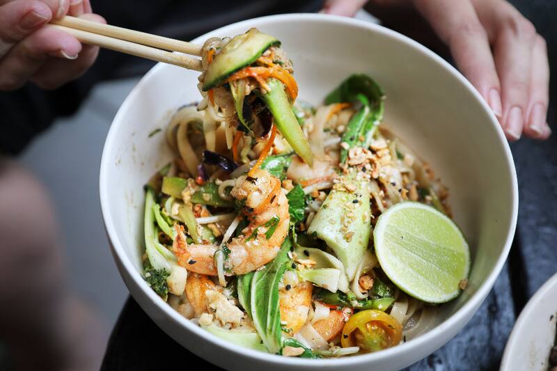 Otro podría ser el Pad thai ($ 3.000), que viene con un mix de vegetales al que le puedes agregar camarones ($ 3.000) y fideos de arroz ($ 1.500).