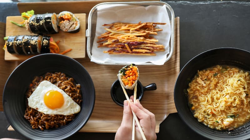 Es más, si se trata de los platos, uno de los imperdibles son los Kimbap ($ 1.600), rollo de arroz envuelto en algas que puedes pedir con distintos rellenos, como atún ($ 2.000); o verduras ($ 1.600).
