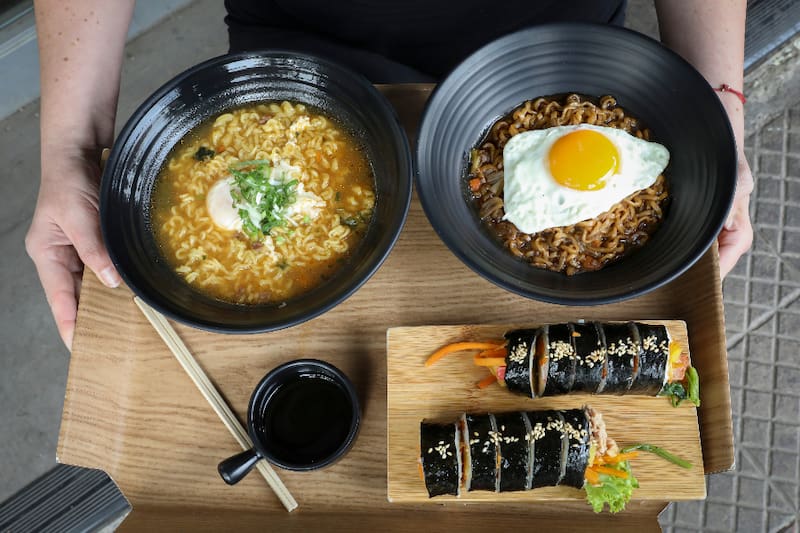 Otro es el Ramen ($ 4.200), sopa que acá tiene un toque picante, una buena cantidad de pasta, huevo de suave yema y verduras; o el Rapokki ($ 6.000), una combinación entre entre Ramen y Tteokbokki, de pasta, con un toque picante, verduras.