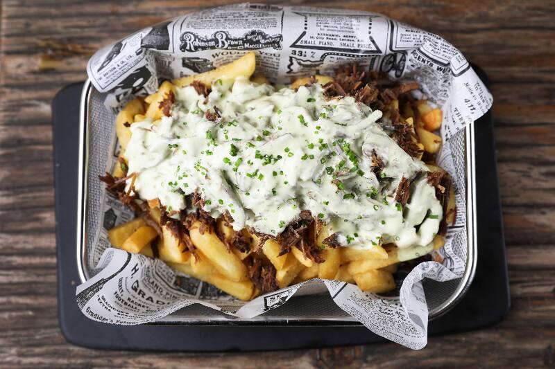 O la mechada del rey ($ 10.900), una italiana que viene en el brioche hecho en el lugar, con coleslaw y papas rústicas.