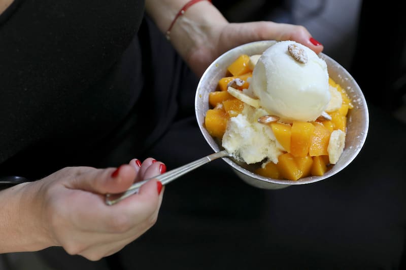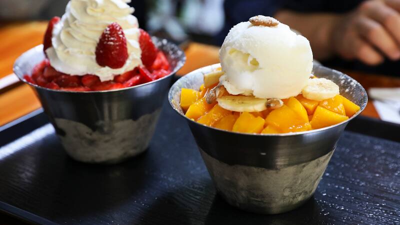 Se trata de la "nieve" obingsu, un refrescante postre similar a un granizado o raspadilla muy fina, que se hace en base a leche y que se sirve con distintos toppings dulces.