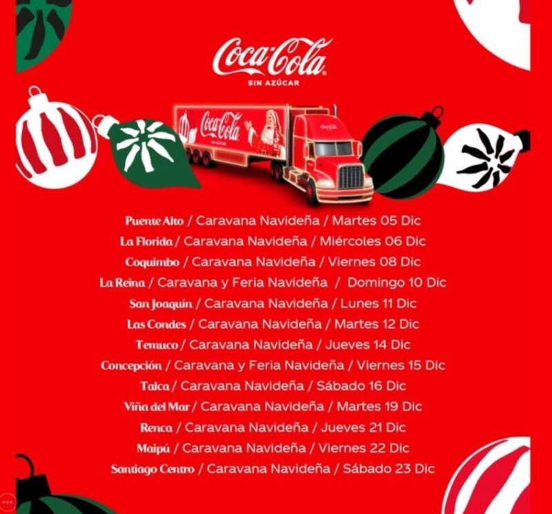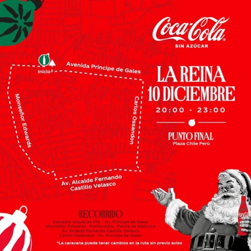 Ahí, la Caravana Coca Cola 2023 se podrá ver este domingo 10 de diciembre, entre las 8 PM y las 11 PM.