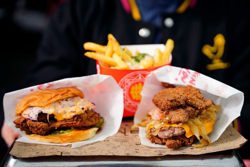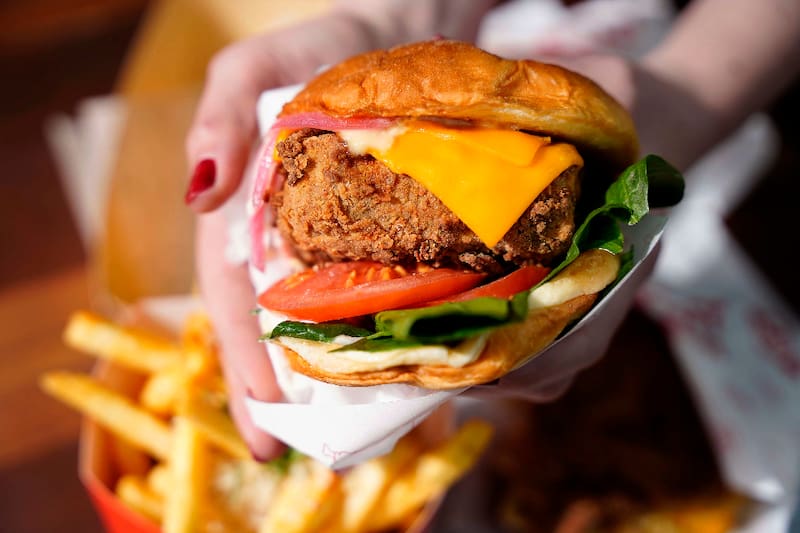 Y si quieres una opción que es pura glotonería, pide el Vaca y pollito ($ 9.990), que viene con dos pollos fritos en vez de pan y en el interior una hamburguesa de queso frita con tocino, cebolla caramelizada y la salsa de la casa.