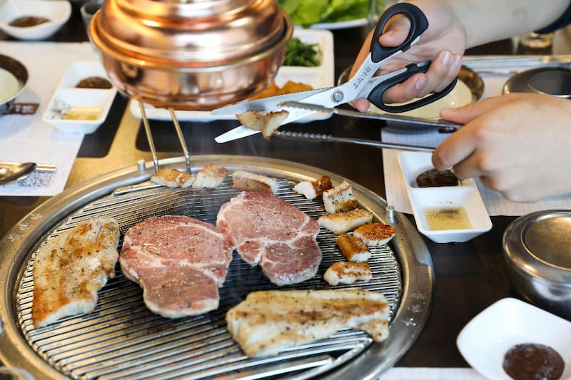 Es decir, puedes probar Samgyeopsal ($ 34.000) papada de cerdo, o el Moksal ($ 34.000), lomo de vacuno, que cocinas tu mismo.