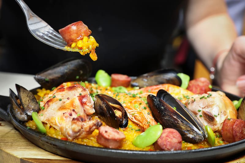 Otra alternativa, es que te tientes directo con los fondos, y pruebes La Paella ($ 16.500) de mariscos con calamar y choritos, chorizo de la casa y alitas de pollo ahumado; o los Sorrentinos de hongos ($ 15.000), que es una pasta fresca rellena de hongos de estación, con pesto de espinaca y espuma de queso parmesano.