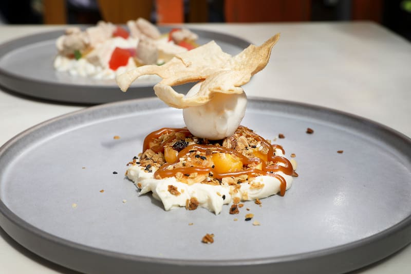 Otro imperdible de este lugar, son los postres, de temporada, como el Camote miel y canela ($ 6.500), de camote horneado, con cremoso de miel, ganache de naranja, caviar de jengibre y helado de canela; o el Manjar, queso y chocolate blanco ($ 7.500), de galleta de almendras, crema de manjar queso, y helado de manjar casero.