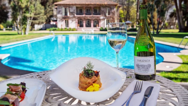 Luego sigue con una degustación de vinos Gran Reserva Tarapacá Etiqueta Negra y termina con un almuerzo, que incluye appetizers, entrada, plato principal, postre y café, y maridado con vinos de la viña