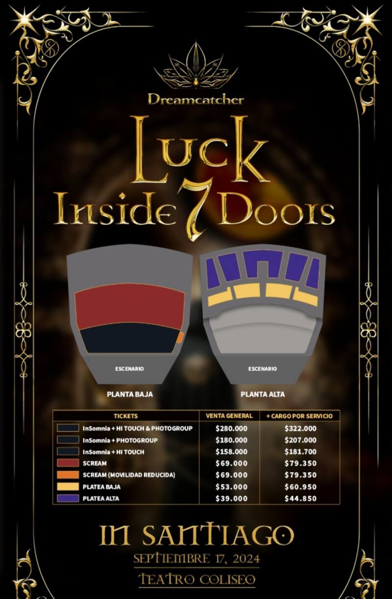 ¿Y cuáles son los precios para Dreamcatcher en Chile 2024? Van desde los $ 44.850 de la platea hasta los $ 322.000 de la experiencia Insominia + Hi Touch & Photogroup.
