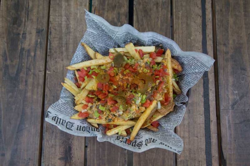 Un plato perfecto para compartir son las “papas supremas”, rústicas y con trocitos de carne, cebollín, salsa queso y un toque de tomate ($ 3.990).