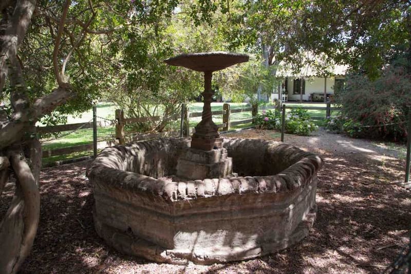 Ahí mismo está la fuente de agua de origen francés frente a la cual, según dice la leyenda, Javiera Carrera se sentó a bordar la bandera de la Patria Vieja, esa que lleva amarillo, blanco y azul.