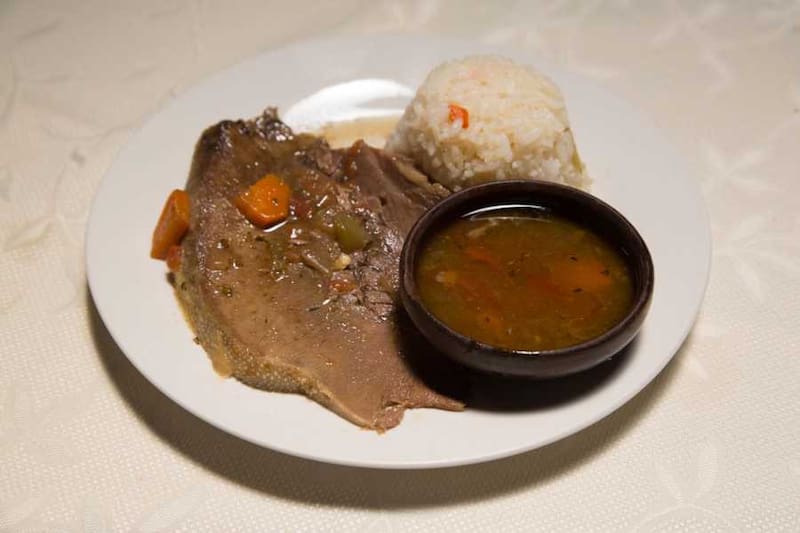 Entre los platos de fondo que te pueden tocar está la lengua a la cacerola, tan sabrosa y blanda que se corta con el tenedor. O las costillas de cerdo hechas en horno de barro, lo mismo que los pasteles de choclo.