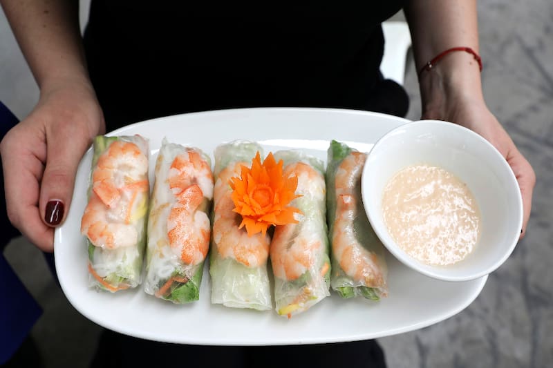 También los Goi Cuon ($ 7.500), rollitos en papel de arroz, rellenos de camarones, zanahoria, verduras, huevo y mango; o los Banh Bao ($ 2.000 cada uno), que son baos, hechos al vapor, rellenos de cerdo con champiñones.
