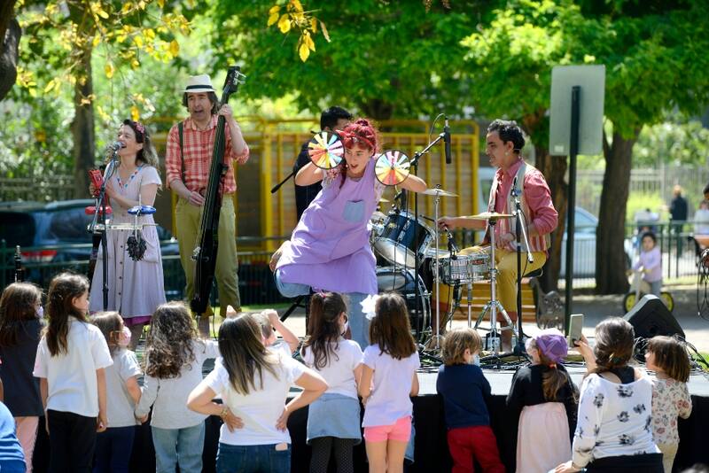 Mientras que el lado circense de Juegos en el Parque correrá por cuenta de un show de magia, danza con cinta, una obra de teatro, burbujas gigantes, títeres, malabaristas, zanquistas, mimos y payasos.