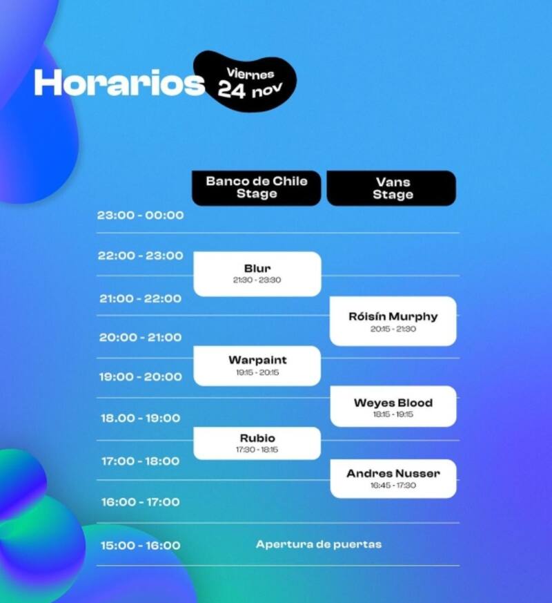 Así, debes que el viernes las puertas se abrirán a las 3 PM para una jornada que contará con Blur y Roisin Murphy como platos fuertes.