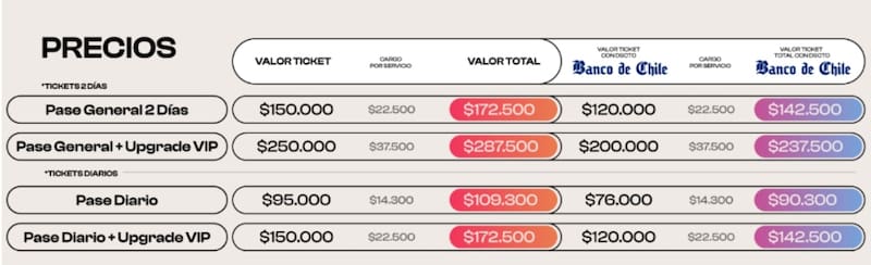 Ojo, que para estos pases también hay descuentos con las tarjetas del Banco de Chile, con cupos limitados.