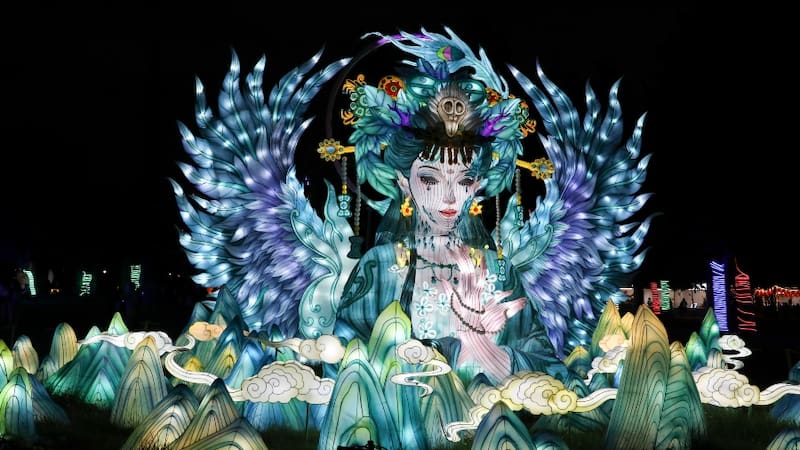 Un evento familiar que se inspira en la cultura china mediante imponentes estructuras iluminadas, que crean un espectáculo impresionante al caer la noche.