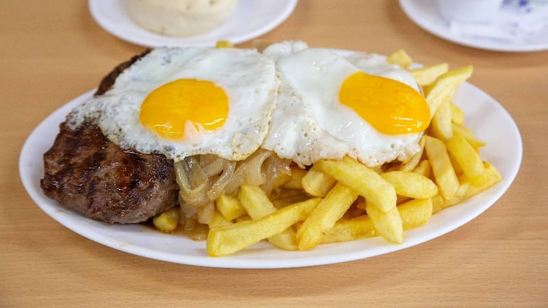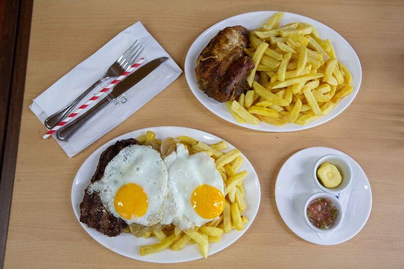 También con preparaciones imbatibles, como la ensalada de apio palta o las versiones “a lo pobre”, con cebolla dorada perfecta y una gran cantidad de papas fritas.