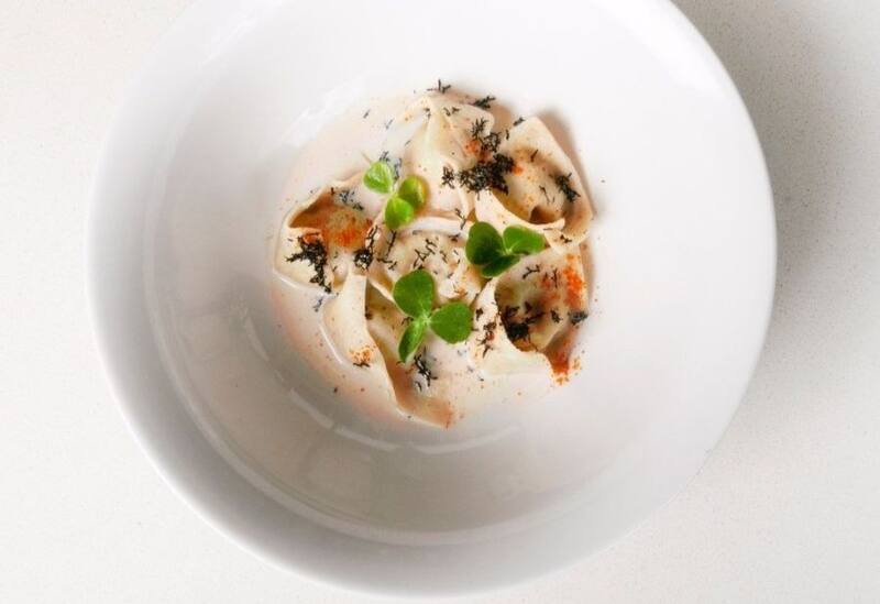 De hecho, son solo tres opciones de entrantes y cuatro de platos de fondo, donde te puede tocar unos agnolotti ($ 9.000), rellenos de jaiba, con queso camembert y yogurt de pajaritos.