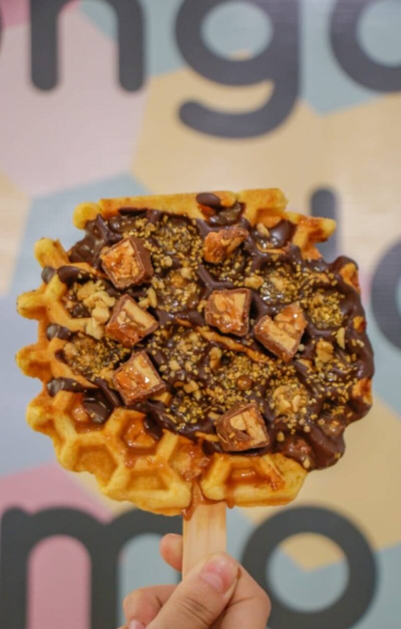 Happy Days Waffles es un pequeño local donde encuentras waffles pops, paletas de esta masa crocante, con opciones como trozos de snickers por ejemplo.
